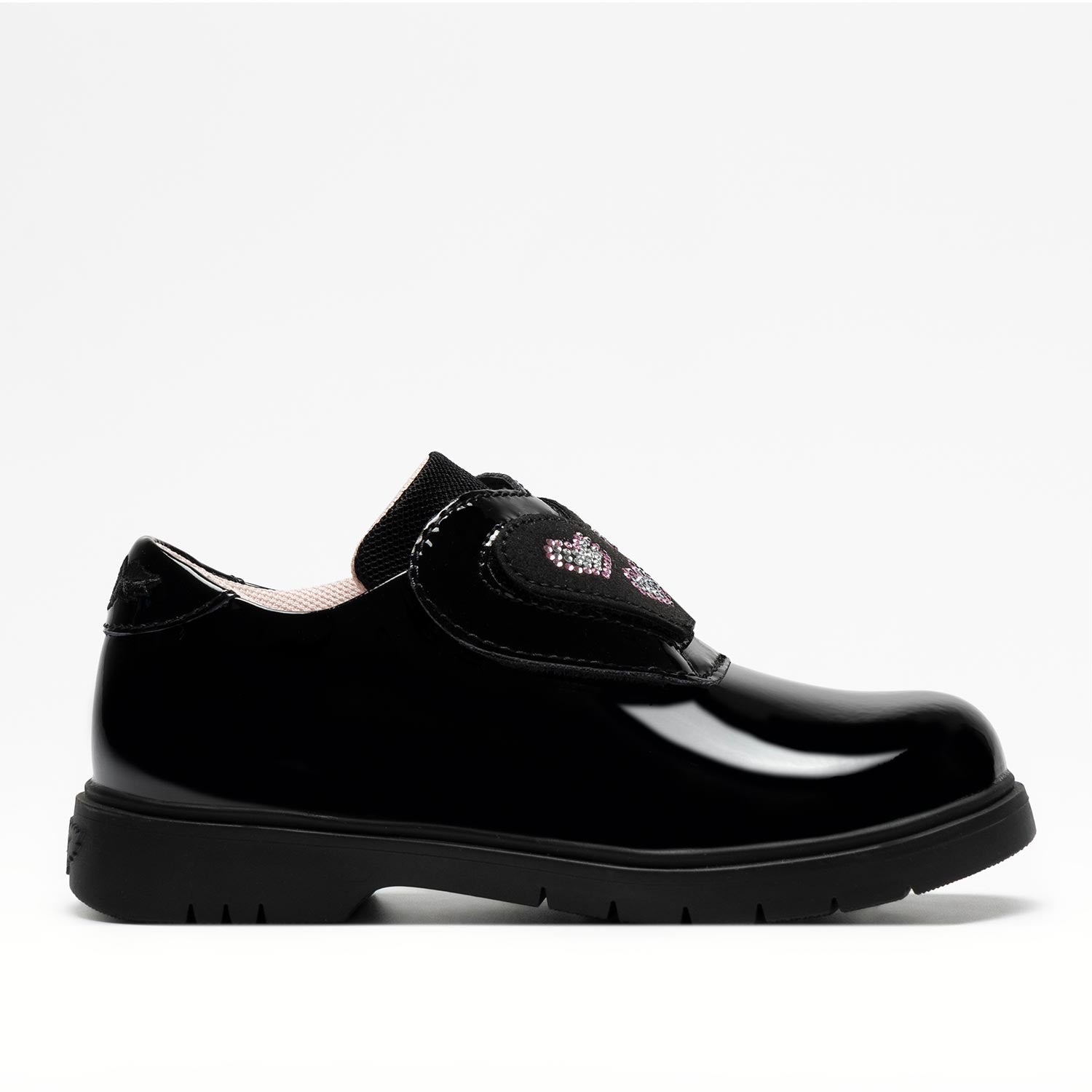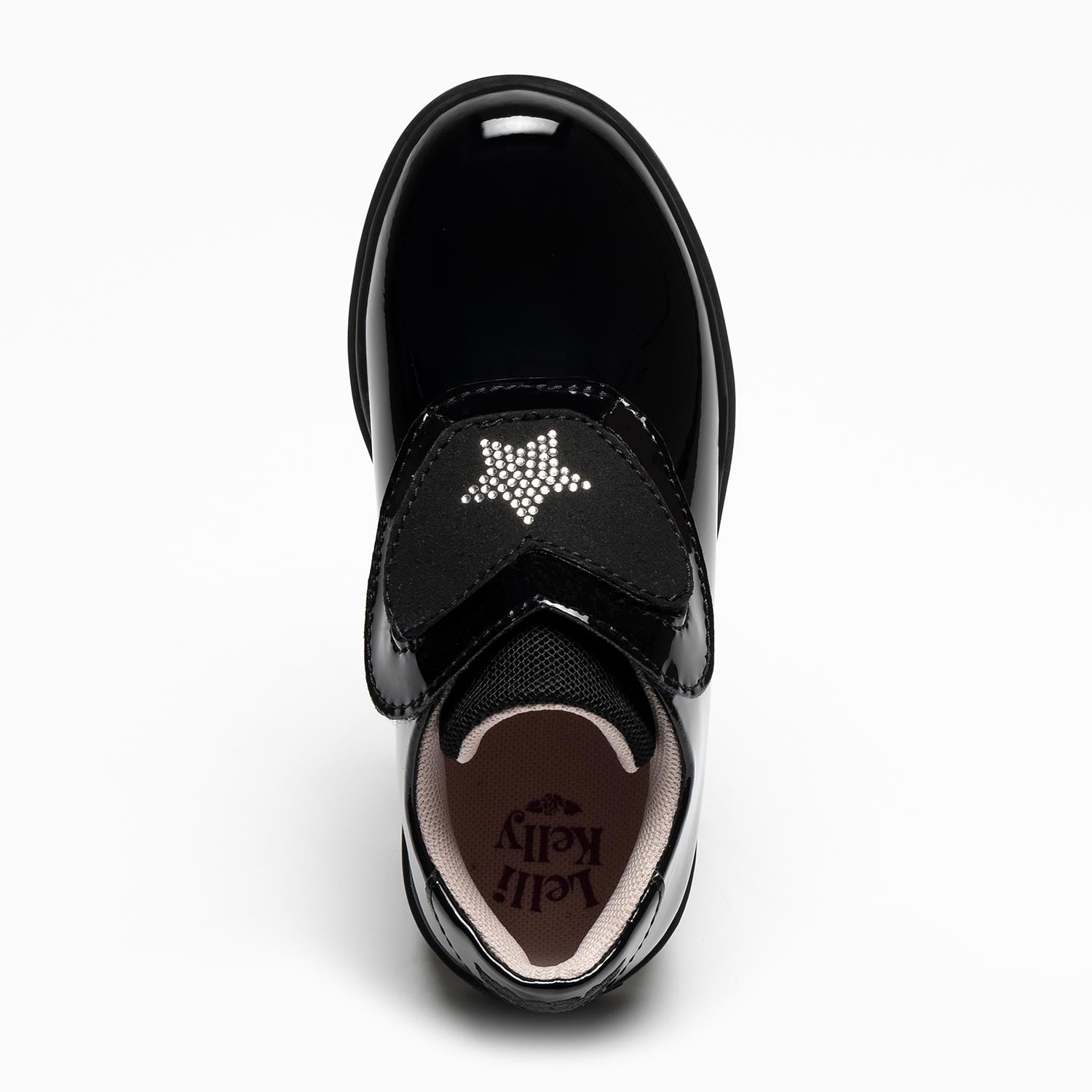 Lelly Kelly school shoes in back patent leather, in a slip on style, the changeable fronts