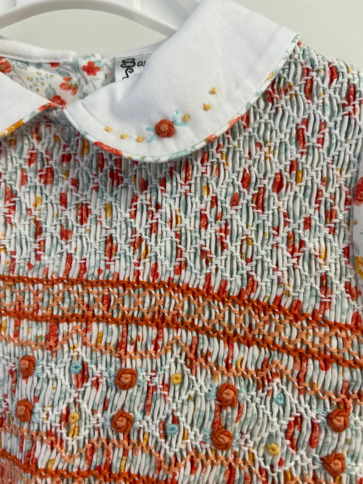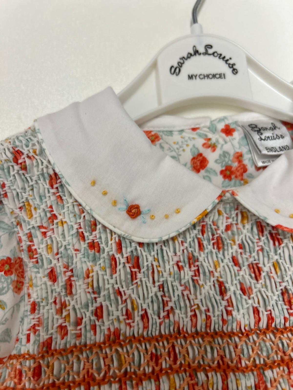 Beautiful Sarah Louise dress, fully lined. Hand smocked, beautiful rose embroidery detail